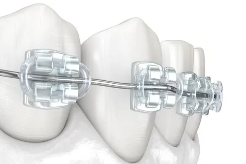 まず、金属ブラケットではなく「セラミックブラケット」や「クリアブラケット」を選ぶことで、装置の色を歯に近づけ、目立ちにくくできます。